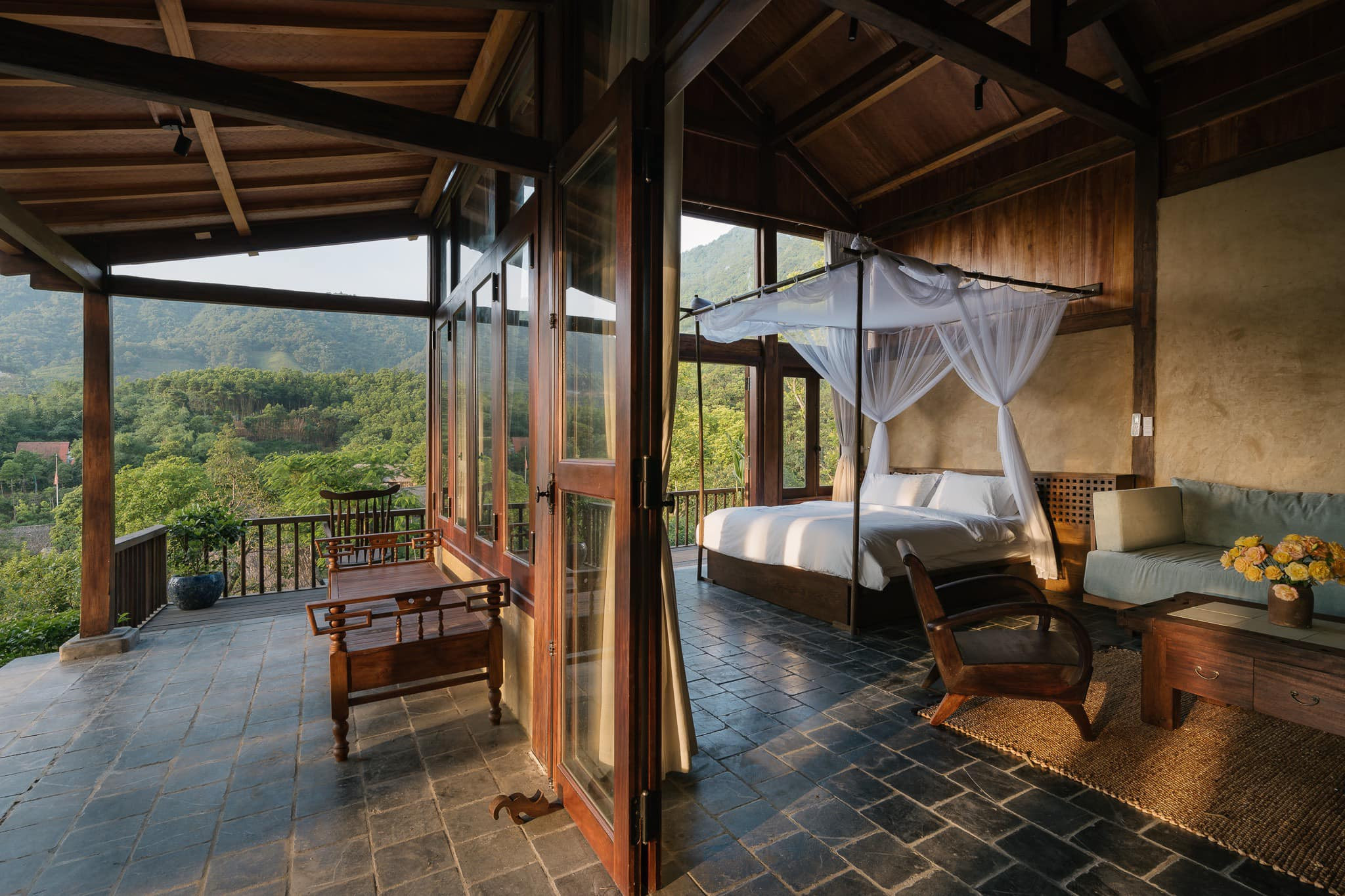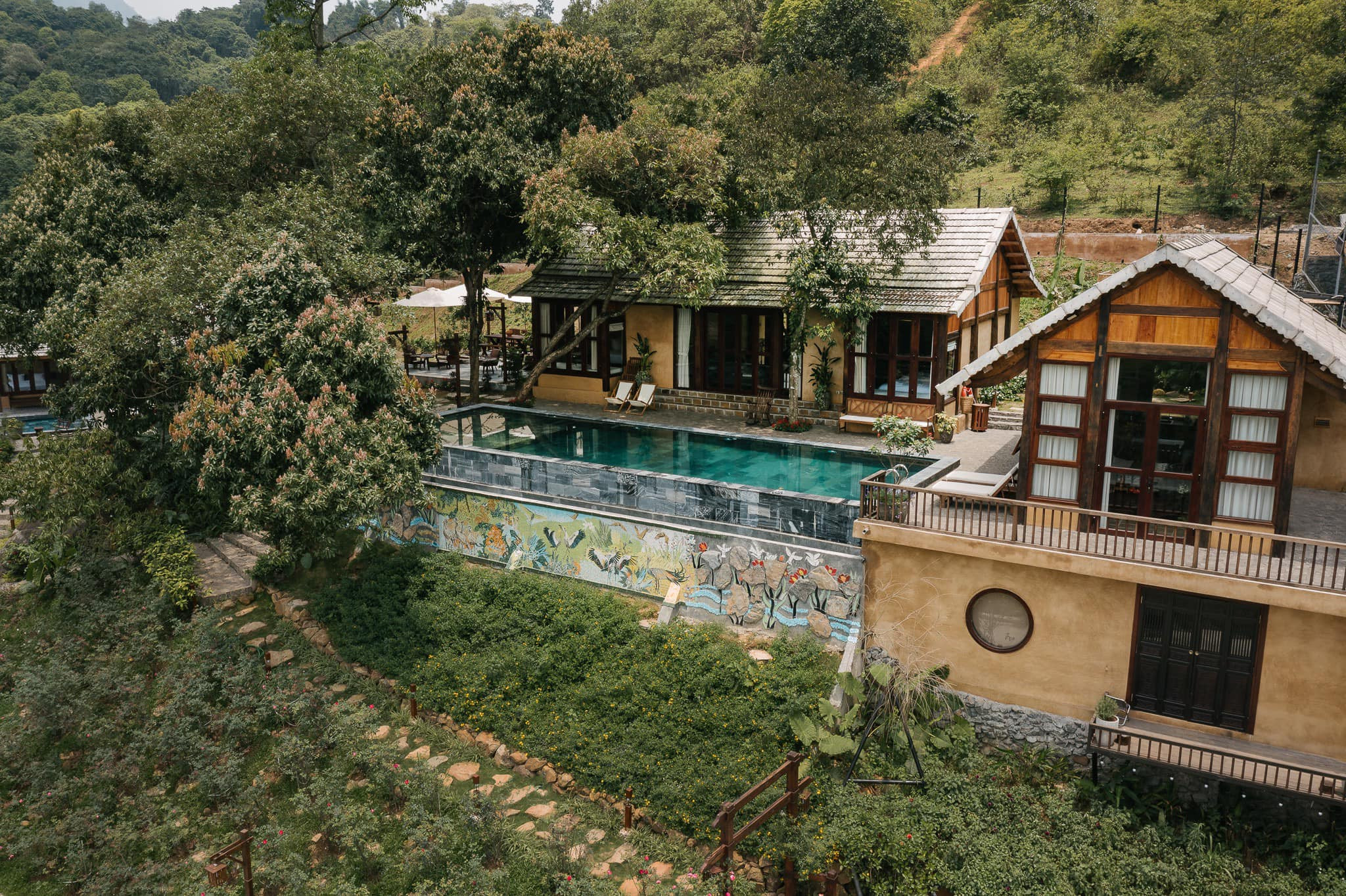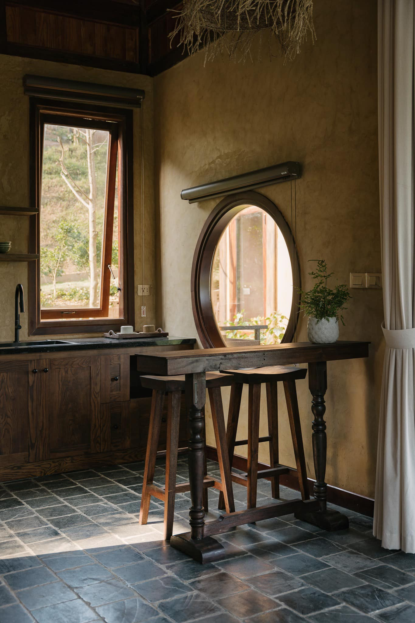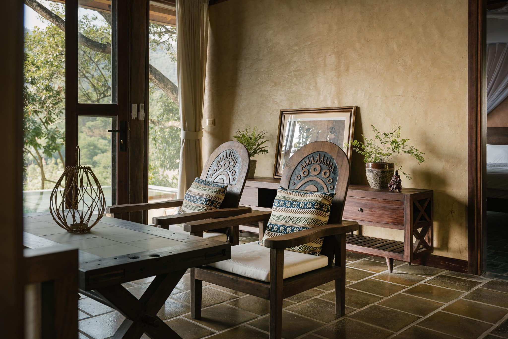 Các kiến trúc sư đã lựa chọn vật liệu cho nội thất, đồ decor đều là gỗ tàu thuyền, gỗ tái chế từ khung cửi cũ…. cứng cáp, trải qua mưa nắng mà tạo nên giá trị, kết hợp với gỗ tần bì lau dầu. Hệ thống ánh sáng được thiết kế riêng với nhiệt độ màu ấm cúng giúp cho các căn nhà về đêm trở nên nổi bật nhưng vẫn lịch sự.