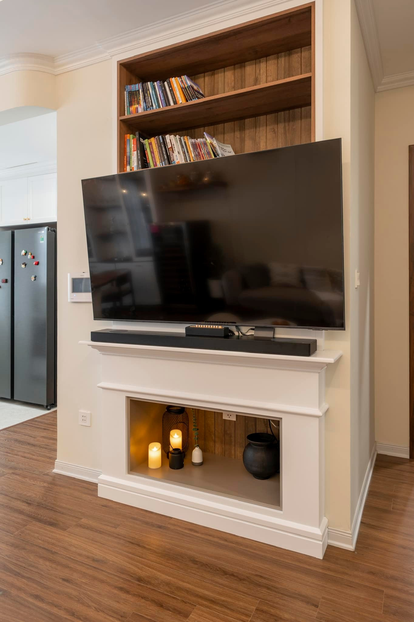 Căn hộ mang thiết kế hiện đại với gam màu trắng của gia đình chị Mai Anh được đặt tên là “căn hộ hạnh phúc”. Chị tâm sự, ai cũng từng mơ về ngôi nhà của riêng mình, về những dự định, những điều yêu thích sẽ được lấp đầy trong ngôi nhà thân thương đó.