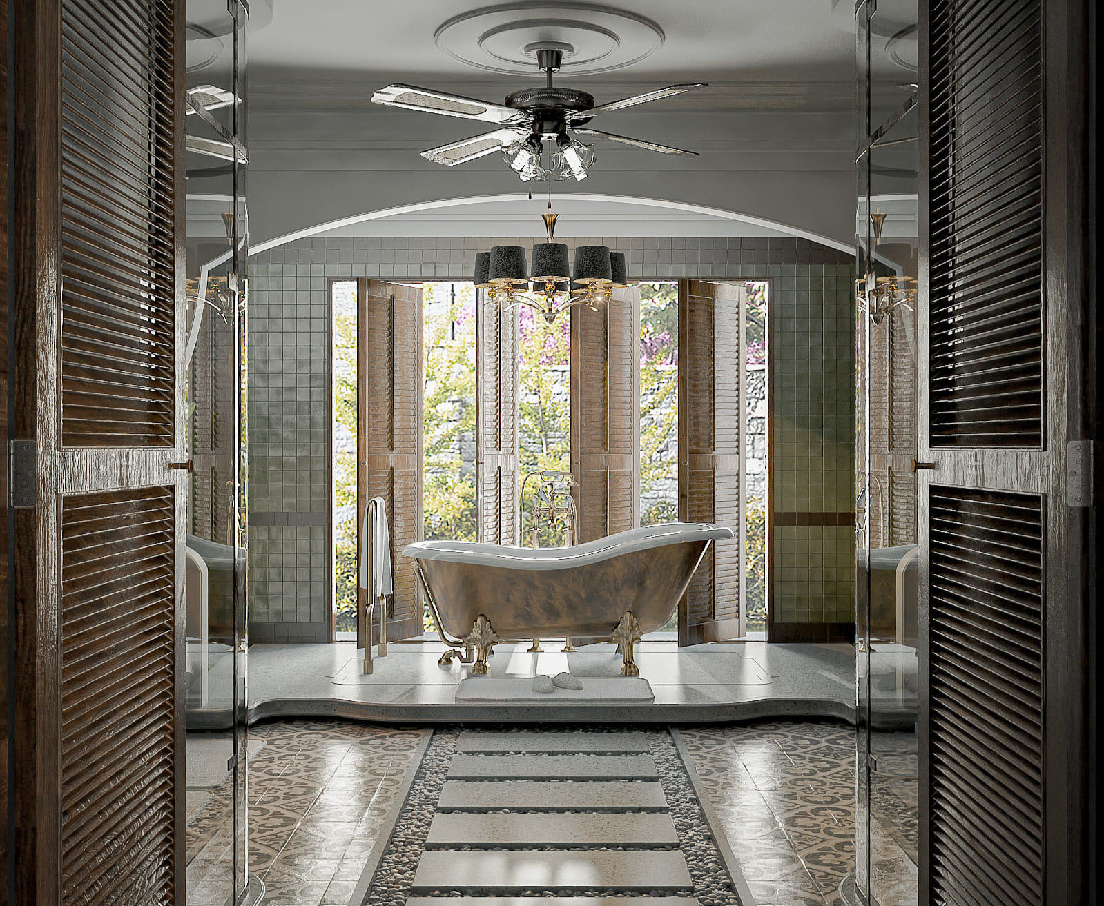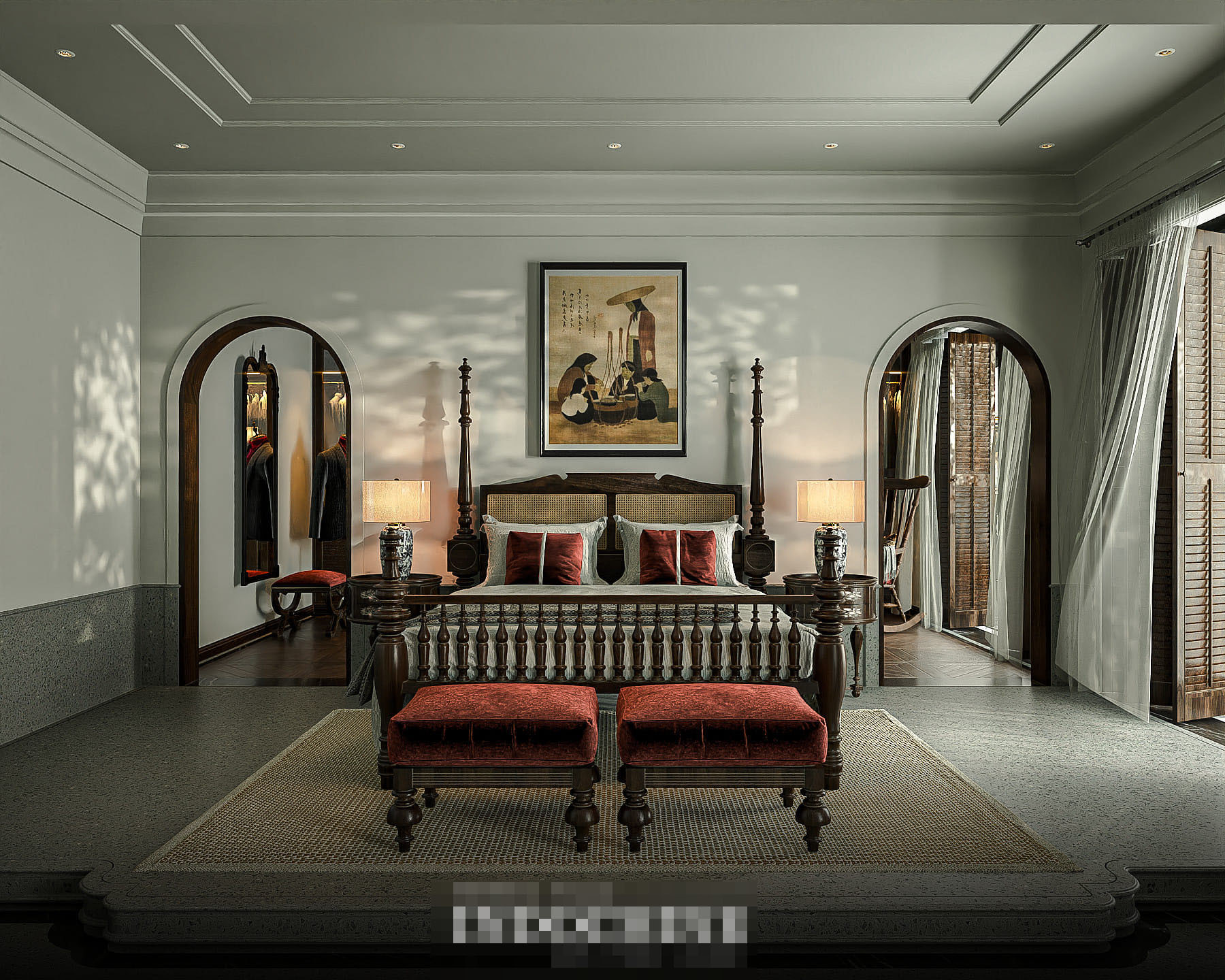 Trong phong cách nội thất Đông Dương, gạch bông, gạch nung thường được sử dụng để lát sàn đã tạo nên vẻ đẹp sang trọng nhưng không kém phần tinh tế cho không gian.