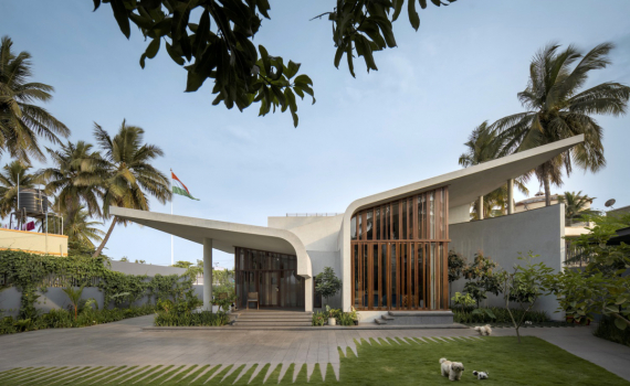Ngôi nhà hai tầng, được xây dựng trên một khu đất rộng rãi, bao gồm cả khuôn viên sân vườn phía trước, tọa lạc tại Hospet, Karnataka, Ấn Độ.