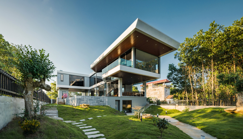 Biệt thự hình chữ L hướng hồ