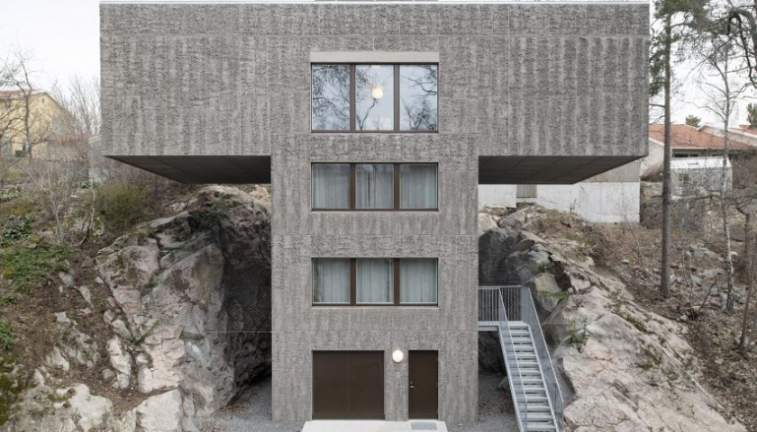 Tọa lạc trên đảo Nacka ở Stockholm (Thụy Điển), "T House" là nơi sinh sống cho một gia đình và một người họ hàng lớn tuổi. Để giải quyết mặt bằng xây dựng hẹp và giảm thiểu việc đào phá dốc đá, công ty Spridd thiết kế phần thân hẹp ở giữa ngôi nhà.