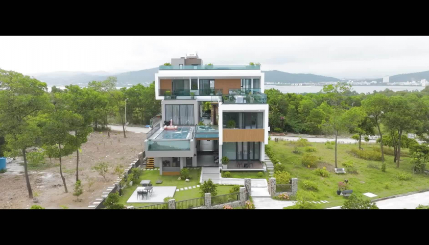 Căn biệt thự có quy mô 3 tầng nổi và một tầng bán hầm, được xây dựng trên khu đất rộng 805 m2 trên đảo Tuần Châu (Quảng Ninh). Với diện tích sàn xây dựng 1.170 m2, công trình được thiết kế với kiến trúc hiện đại, tất cả các không gian đều thông thoáng, tận dụng được hướng gió mát và hướng tầm nhìn ra Vịnh Hạ Long.