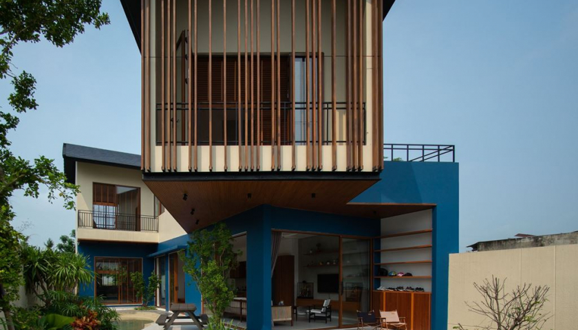 Biệt thự 2 tầng với thiết kế mái hiên đua rộng ấn tượng