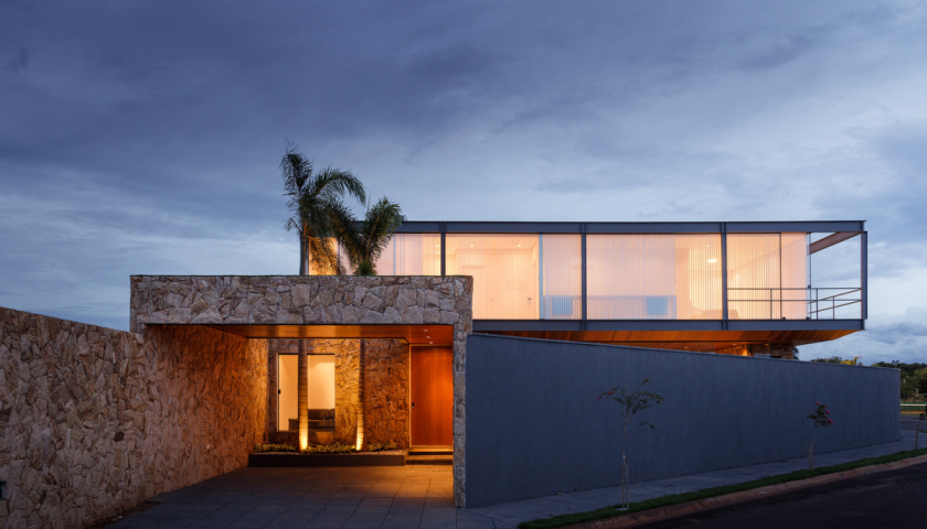 Ngôi nhà có quy mô hai tầng, được xây dựng trên khu đất hình tam giác rộng 308m2 tại Brazil.