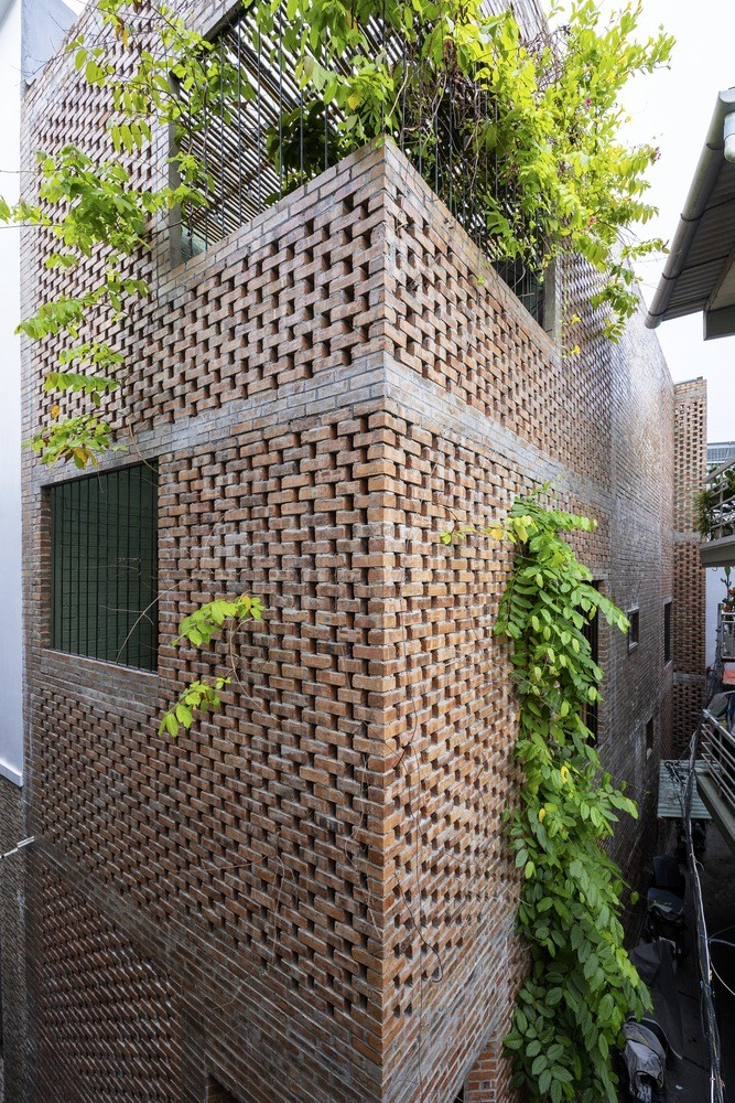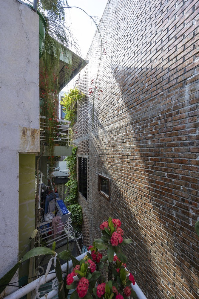 Kiến trúc sư sử dụng gạch nung có khoảng trống cho ngôi nhà, điều này giống như tạo ra các cửa chớp để thông gió. Phương pháp xây dựng này cho phép những làn gió mát từ ngõ tràn vào nhà.