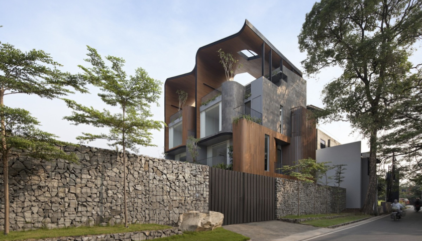 Ngôi nhà ba tầng được xây dựng trên khu đất rộng hơn 500m2, tại Prapatan (Indonesia).