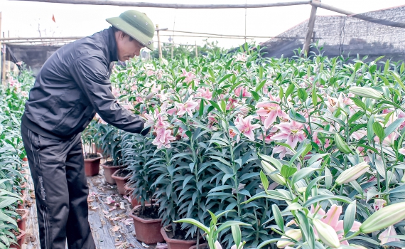 Nông dân xã Việt Hùng tích tụ ruộng đất trồng hoa, cây màu cho hiệu quả kinh tế cao.