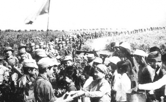 - Sao anh biết? - Quất hỏi, tay vẫn nắn nót viết khẩu hiệu. Chiếc bút tre đưa những nét vôi trắng lên tấm cánh cửa gỗ lim: Năm mới kháng chiến...