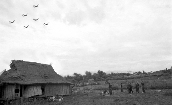 Mười chiếc Đa-cô-ta ù... ù... ì... ì... bay theo hình vòng cung, từ phía Hải Phòng qua Thái Bình lên Tây Bắc. Chúng bay cao, luồn rúc vào mây, hối hả, vội vã... Có ngày hai, ba chuyến. Lúc đầu thấy chúng bay qua, người làng Nguyễn chạy ra hào hố. Sau chỉ đứng xem rồi bàn tán cho sướng miệng. Quất tỏ ra thạo tình hình: