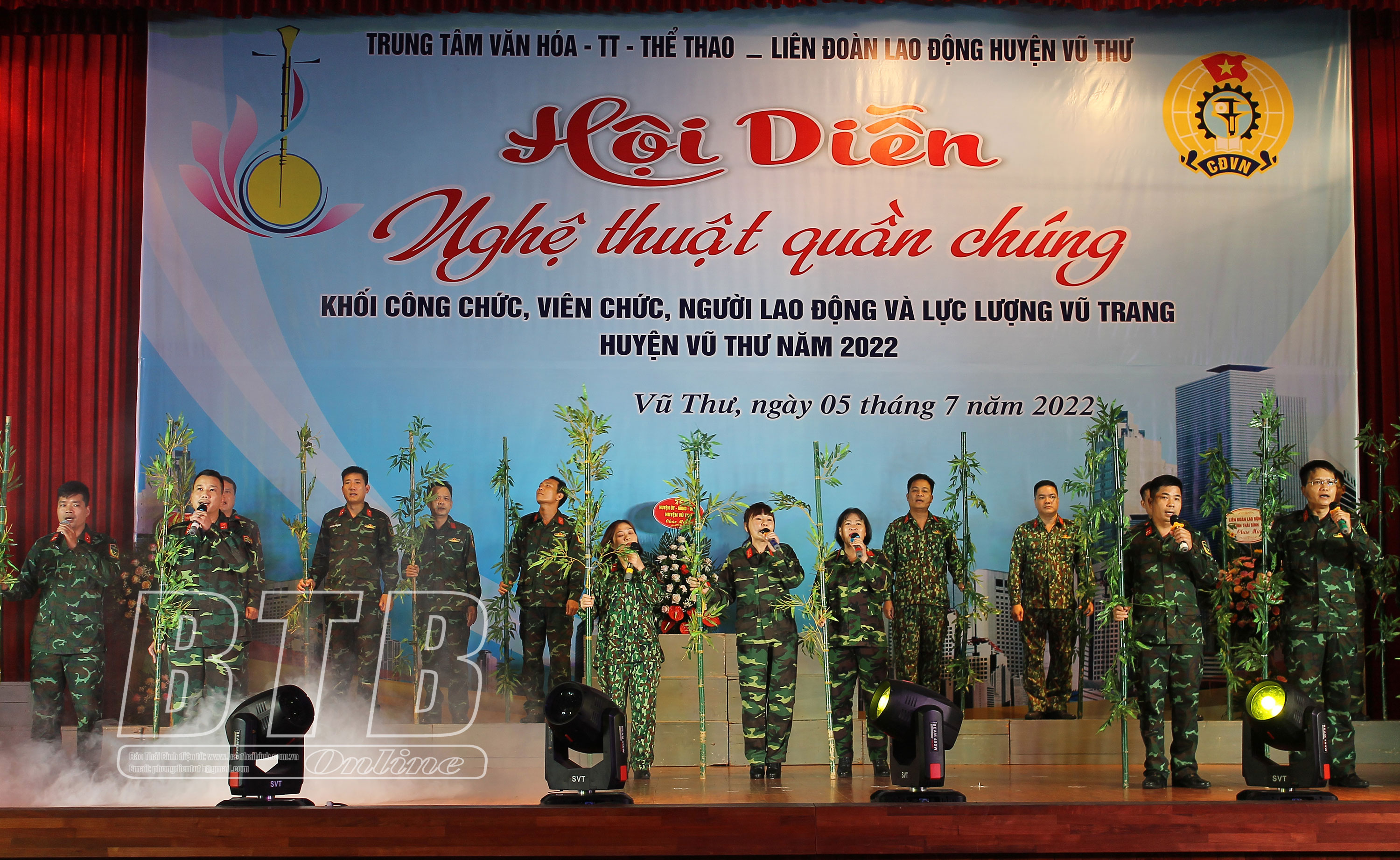 Sáng ngày 5/7, Liên đoàn Lao động huyện Vũ Thư phối hợp với Trung tâm Văn hóa - Thể thao huyện tổ chức hội diễn nghệ thuật quần chúng khối công chức, viên chức, người lao động và lực lượng vũ trang năm 2022.