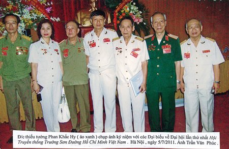 Thiếu tướng Phan Khắc Hy (người đứng thứ hai từ phải sang trái) chụp ảnh kỷ niệm với các đại biểu về dự ại Hội Truyền thống Trường Sơn đường Hồ Chí Minh Việt Nam lần thứ nhất tại Hà Nội ngày 5/7/2011. Ảnh: Trần Văn Phúc (CTV)