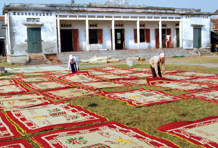 Năm tháng qua đi, anh em tôi lớn lên cùng những lá chiếu mẹ giao cho để dệt sau mỗi giờ đến lớp, cùng với trang lứa như bao nhiêu gia đình khác trong cái làng nhộn nhịp ấy. Hết sản phẩm được giao từ mẹ, chúng tôi lại được vui cùng đám bạn nô đùa nghịch ngợm nơi đình làng, miếu xóm. Sản phẩm mà mẹ giao cứ nhiều dần, nhiều dần bởi anh em tôi càng lớn càng nhanh tay, nhanh mắt. Những chiếc chiếu mẹ giao cho chúng tôi luôn cố gắng làm thật nhanh để hoàn thành thật sớm, có thêm nhiều thời gian cho những trò chơi cùng lũ bạn, nhưng sản phẩm ấy lại bị tăng lên như chiếc vòng kim cô thít lại thời gian nô đùa.