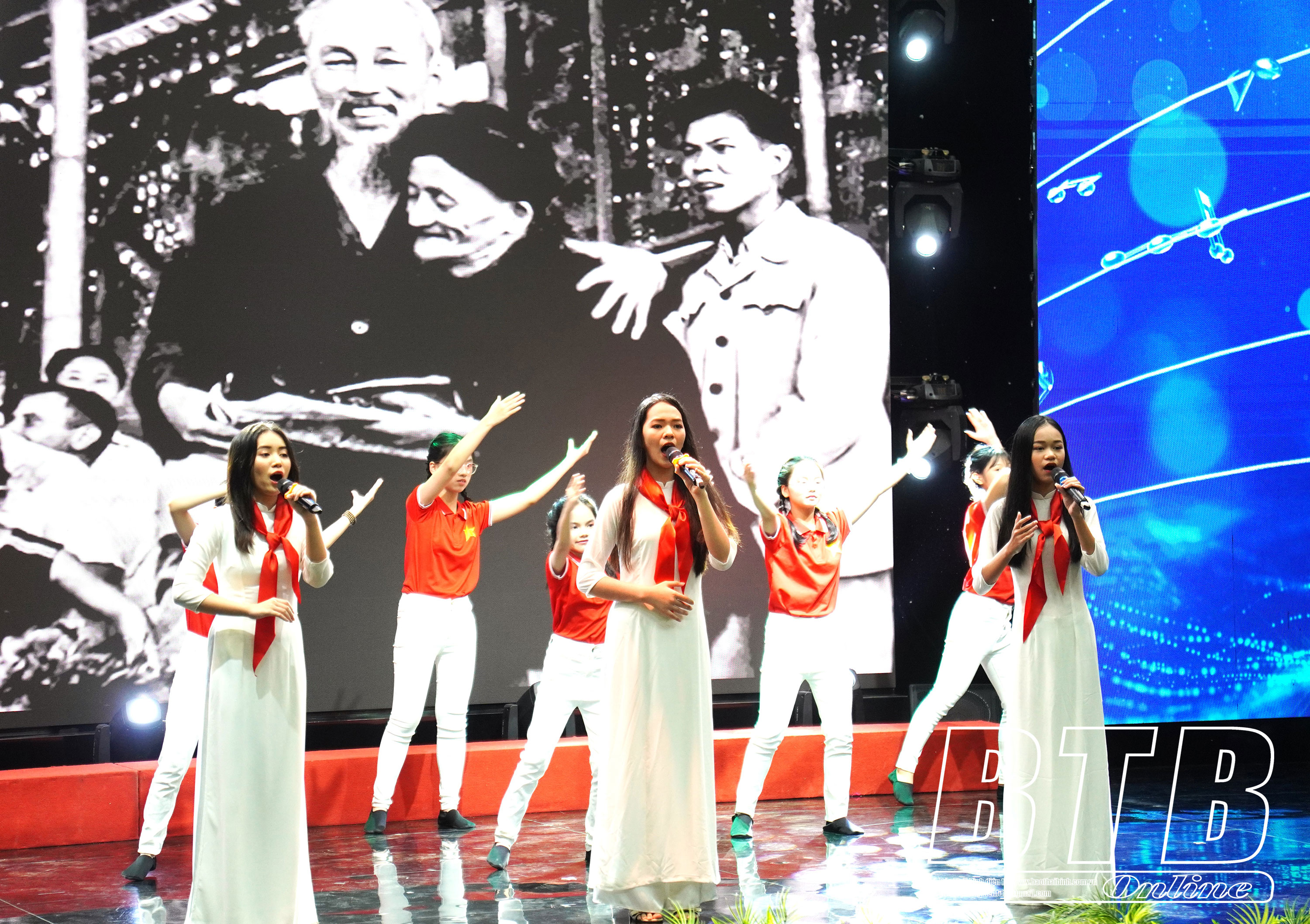 Các thí sinh thể hiện ca khúc về Chủ tịch Hồ Chí Minh.