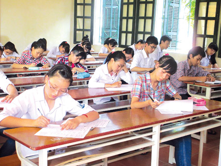 Các thí sinh tham gia kỳ thi tuyển sinh vào lớp 10 THPT năm 2014 tại Hội đồng thi Trường THPT Lê Quý Đôn, thành phố Thái Bình. Ảnh: Đặng Anh