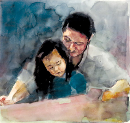- Ðang học bài hả con?