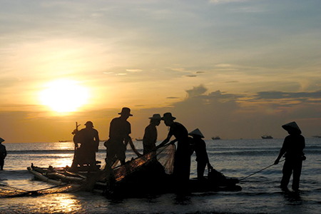 “Hôm nay lạnh quá nhỉ?” Tôi giật mình khi nghe thấy tiếng nói chuyện phía sau. Các bác, các cô tôi đang chuẩn bị vào rừng, ra khơi để đánh bắt những thứ quà mà thiên nhiên ban tặng. Dù đã mặc ấm lắm nhưng tôi biết, để có đủ tiền chuẩn bị cho con những bữa cơm ngon, chỉ vài phút nữa thôi họ sẽ phải ngâm mình trong bùn, nước lạnh.