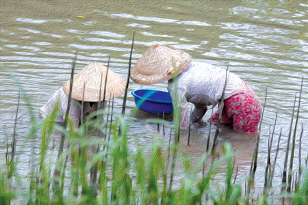 Tôi không đủ lớn khôn để tính toán xem một giỏ cua mẹ bắt được đeo lệch bên hông, nước da mẹ cháy sạm, tay mẹ sần sùi vết cua cắp sẽ bán được bao nhiêu tiền và đổi ra được mấy bơ gạo để hai đứa tôi không phải nhịn bữa lúc giáp hạt. Tôi đi theo mẹ trong những buổi nghỉ học để mẹ không còn phải thui thủi một mình. Tôi chỉ việc xách giỏ trên bờ để lưng mẹ bớt đau. Ðổi lại tôi có cả thế giới của riêng mình. Lúc thì con ốc bươu hay con trai to đùng mà mẹ mò được phần hai đứa. Ăn xong vỏ trai để chơi đồ hàng thích phải biết. Cả bọn chỉ có mỗi chị em tôi có thứ “nồi để luộc bánh chưng” độc đáo như thế. Lúc thì con muỗm béo múp. Tôi bắt được cả túi cào cào xanh. Về nhà bẻ càng thả chúng làm trâu, bò nhộn nhạo khắp sân. Tôi giàu có hơn em tôi vì có cả một “đàn trâu” đông nghịt. Tôi mê tít những buổi theo mẹ ra đồng bắt cua như vậy và còn nói chắc chắn rằng, sau này tôi lớn lên sẽ là người bắt cua giỏi nhất làng. Lúc ấy mẹ bảo, tôi phải học giỏi sau này tôi làm một nghề khác nhàn hơn để nuôi sống bản thân chứ đừng làm công việc vất vả này. Mẹ không được học cao nên mẹ mới phải lươn bùn làm lụng như thế...