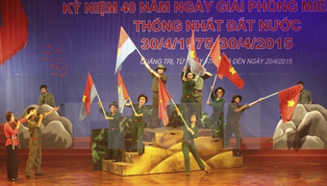 Chương trình biểu diễn của của Đoàn nghệ thuật quần chúng Quảng Trị. (Ảnh: Hồ Cầu/TTXVN)