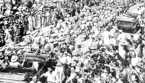 Đoàn quân tiến về tiếp quản Thủ đô Hà Nội, ngày 10/10/1954. Ảnh tư liệu