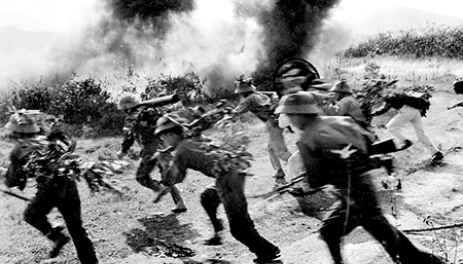 Các chiến sĩ giải phóng băng qua bãi đất trống gần đường 9 Nam Lào trong hoạt động quân sự đối kháng với chiến dịch Lam Sơn 719 của quân đội Sài Gòn, năm 1972. Ảnh tư liệu