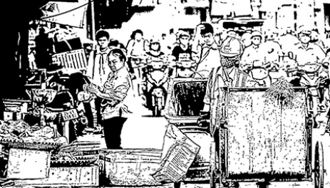 Có lần Thúc đang lom khom quét dọn giúp một bà hàng rau ở góc chợ Mơ thì một tốp chừng ba bốn thằng lau nhau kéo đến. Chúng vây quanh Thúc, giằng cái chổi quét chợ, bắt phải đứng im. Toàn những tên móc túi cướp giật chuyên nghiệp hoành hành ở các chợ. Cả bọn chẳng thằng nào đáng tuổi em út của Thúc mà chúng toàn xưng hô mày tao, chí tớ như bọn cùng đẳng. Một thằng mắt híp, tóc tai bờm xờm nhìn chằm chằm vào mặt Thúc, hất hàm hỏi: