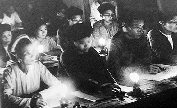 The soi đèn lục lọi, tìm kỳ được tập sách học bổ túc văn hóa của Tuyền xếp chung vào tập sổ công tác.