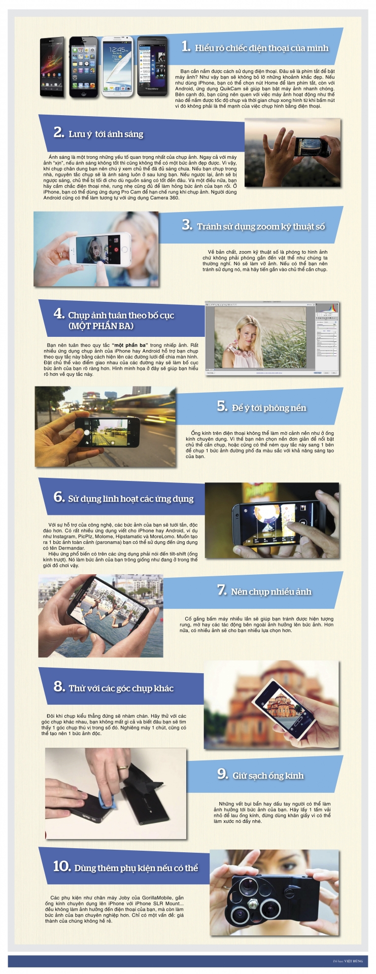 Trong thời đại kỹ thuật số hiện nay, không khó để sở hữu một chiếc Smartphone. Rất nhiều người đã dùng smartphone để chụp ảnh. Trên thực tế, Smartphone chính là thiết bị chụp ảnh phổ biến nhất thế giới hiện nay. Nếu bạn muốn sáng tác những bức ảnh tuyệt vời chỉ với một chiếc smartphone với camera không quá tồi của mình, hãy tham khảo các “bí kíp” dưới đây.