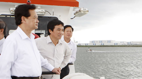 Thủ tướng Nguyễn Tấn Dũng thị sát cảng nước sâu Cái Mép - Thị Vải - Ảnh: TTXVN
