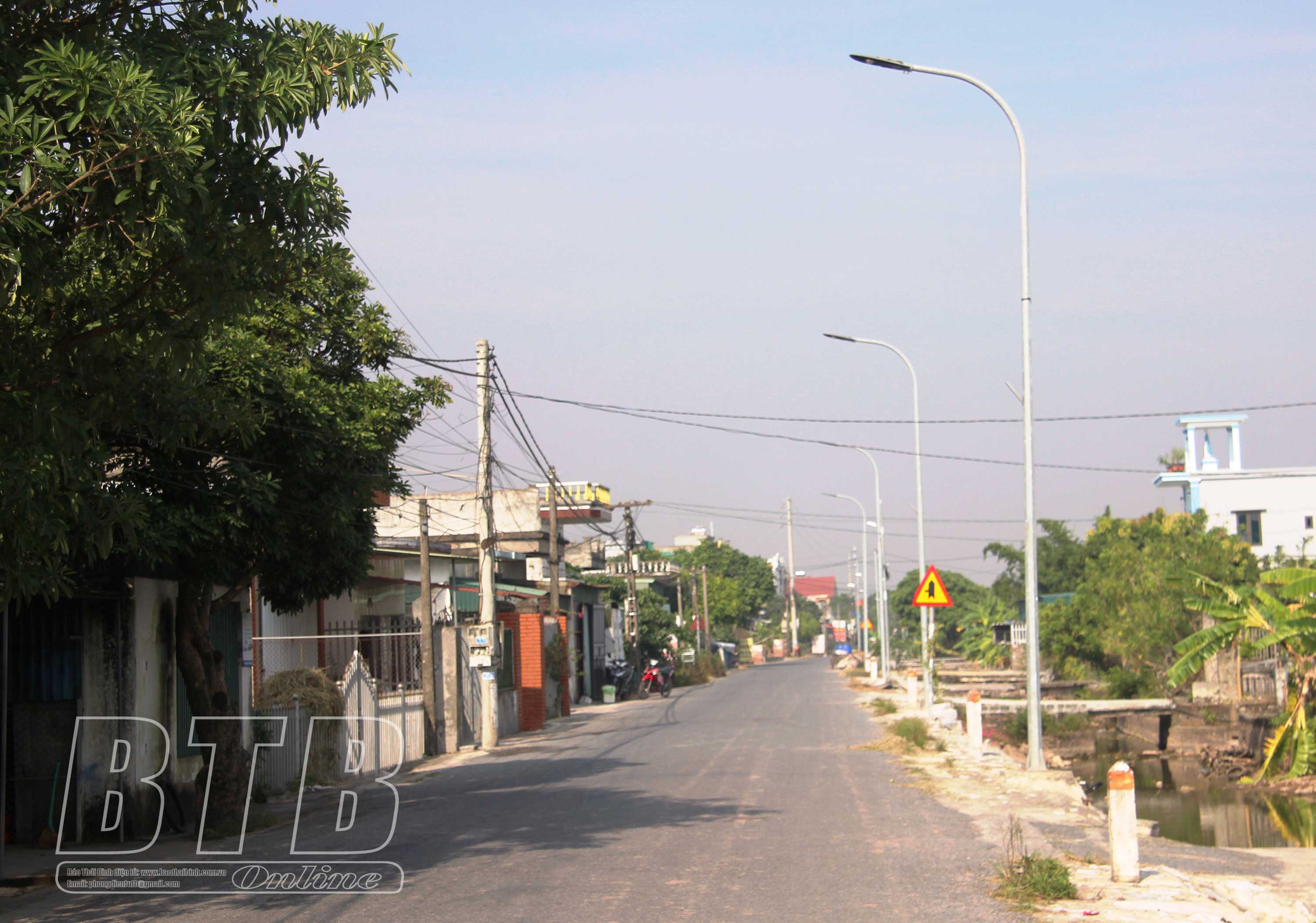 Hệ thống đèn điện chiếu sáng các tuyến đường tại xã Bắc Hải, Tiền Hải đươc lắp đặt đồng bộ...