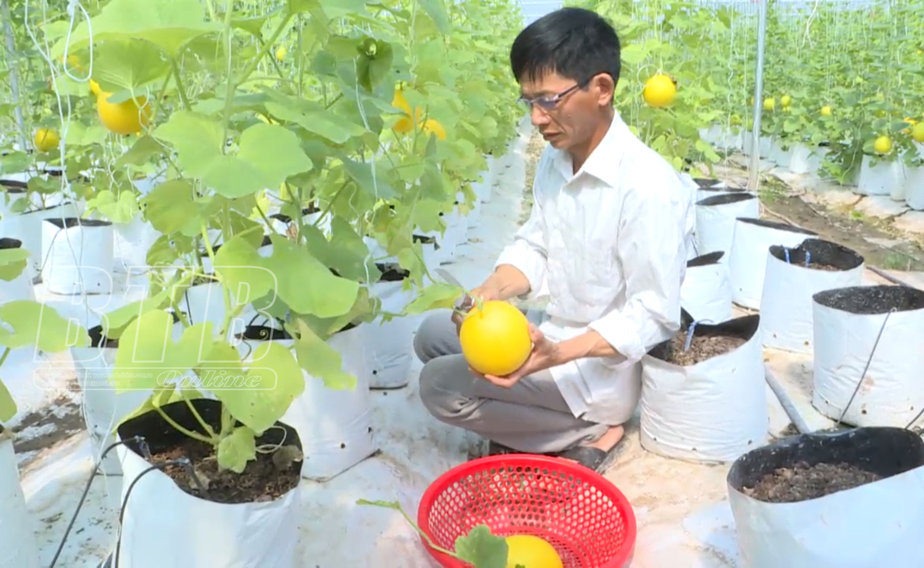 Hội viên Nguyễn Thái, xã Bình Định, huyện Kiến Xương áp dụng khoa học kỹ thuật vào trồng dưa chuột, dưa lưới đem lại hiệu quả kinh tế cao.