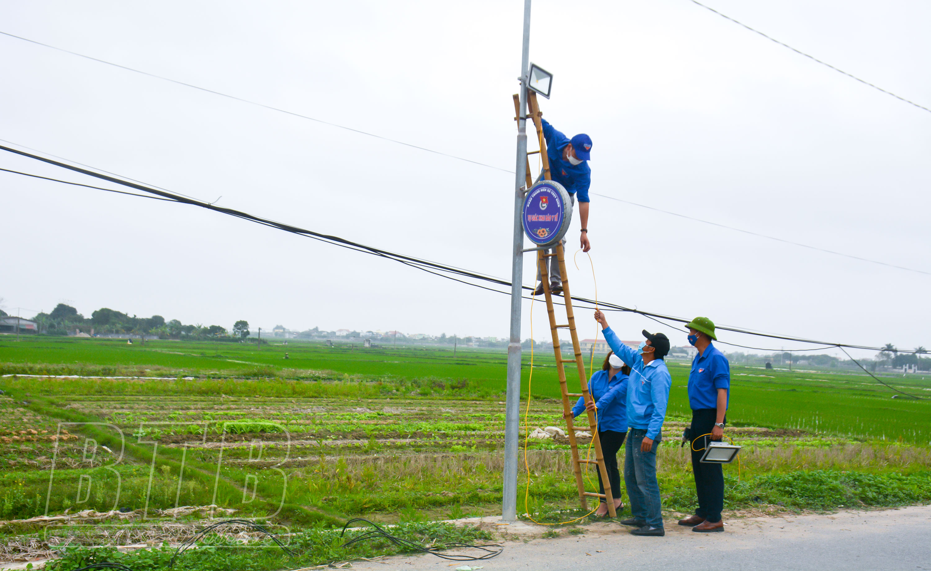 Lắp đặt công trình thanh niên thắp sáng đường quê tại xã Thụy Bình (Thái Thụy).