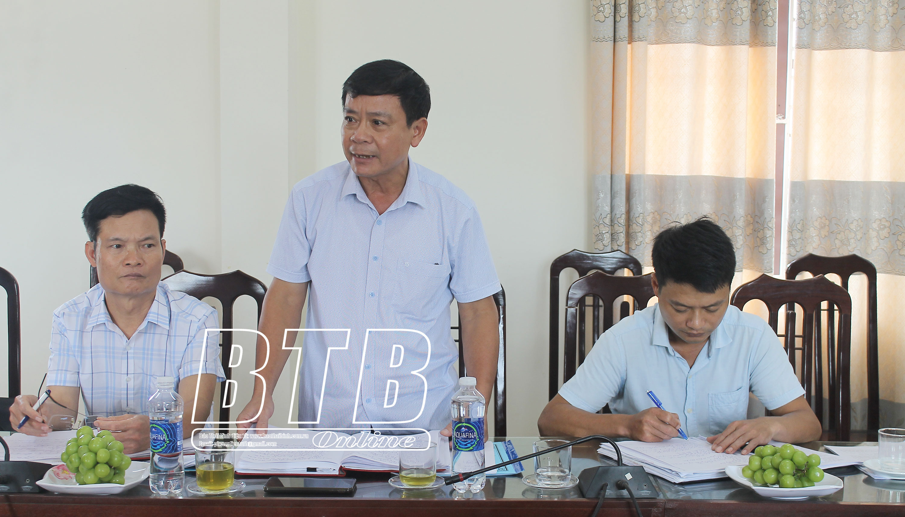 Đồng chí Nguyễn Quang Anh, Tỉnh ủy viên, Bí thư Huyện ủy Vũ Thư phát biểu tại buổi làm việc.