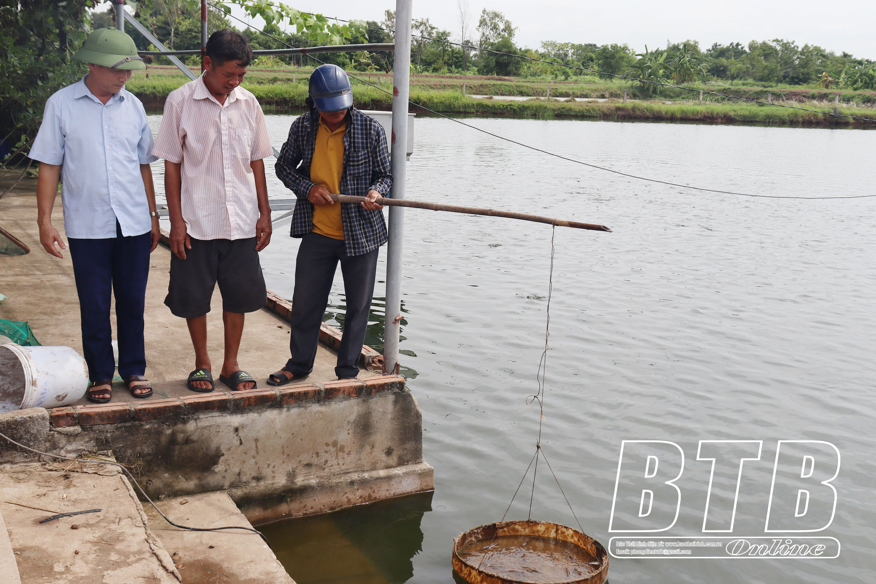 Không chỉ có cá, ở Vũ Bình còn có mô hình nuôi tôm của ông Nguyễn Văn Hướng, thôn Mộ Đạo 3. Ông Hướng chia sẻ: Trước đây tôi nuôi tôm ở Tiền Hải nhưng đầu năm 2023 gia đình quyết định trở về quê đấu lại 5,2 mẫu ao của người quen để nuôi 1 ao tôm, 1 ao tôm xen cá. Do có kinh nghiệm nuôi tôm lâu năm nên mặc dù mới đi vào nuôi thí điểm ở vùng đất ven sông nhưng tôi đã thu hoạch 2,3 tấn tôm, sau khi trừ chi phí thu lãi 100 triệu đồng, dự tính hơn tháng nữa tôi sẽ thu hoạch cá. Cứ đà này, nếu sản xuất ổn định mỗi năm tôi thu hoạch 2 lứa tôm, 1 lứa cá, dự kiến lãi trên 300 triệu đồng.