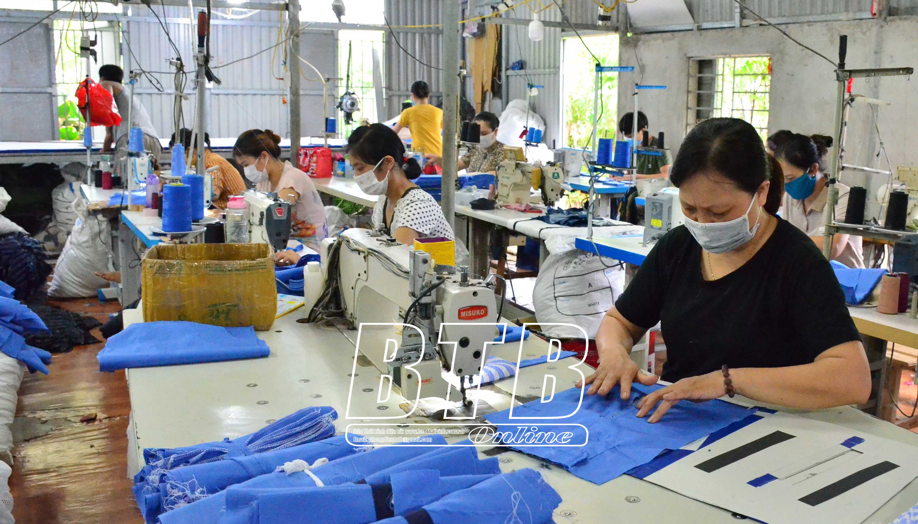 Nhiều phụ nữ ở Quỳnh Phụ có việc làm ổn định, thu nhập khá từ các mô hình kinh tế do phụ nữ làm chủ. Trong ảnh: Cơ sở may tại xã An Tràng (Quỳnh Phụ).