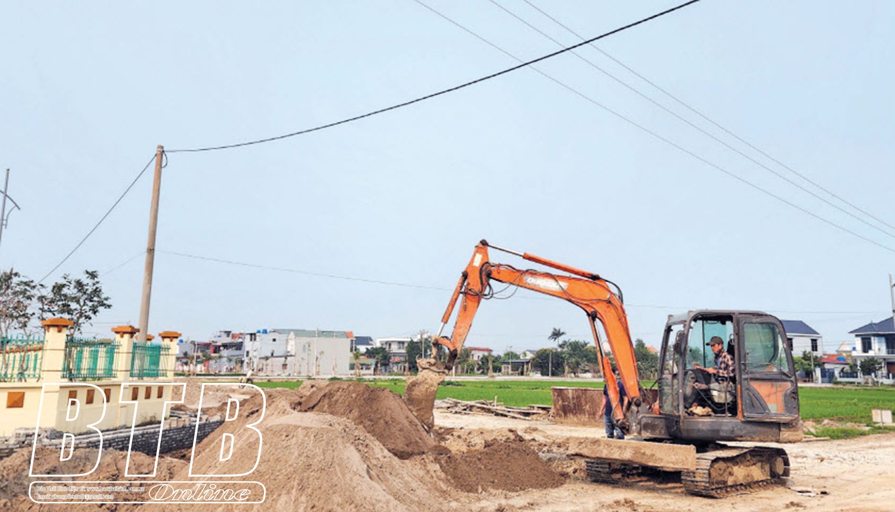 Thi công tuyến đường vào nhà văn hóa xã Đông Xá.