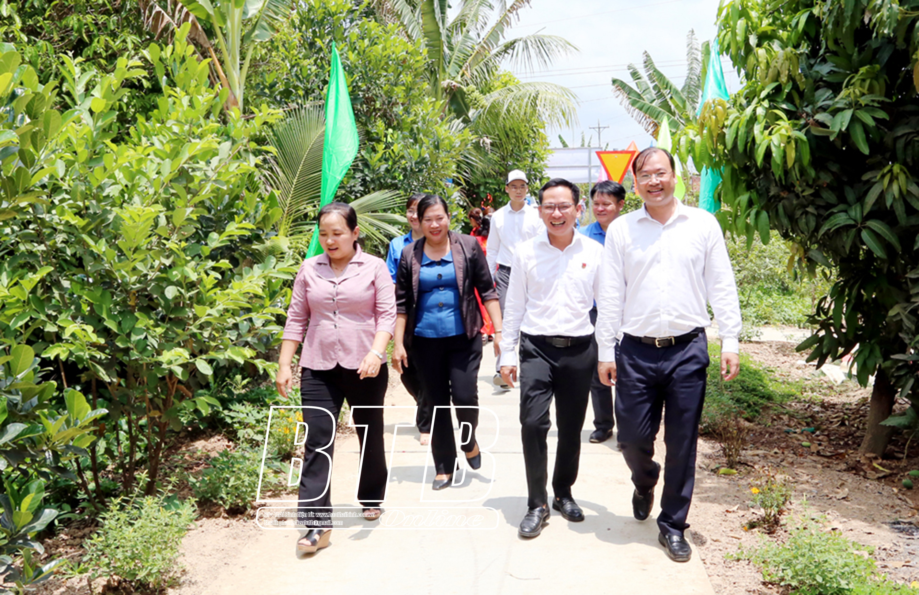 Các đại biểu tham quan công trình đường giao thông nông thôn - đường Thái Bình tại ấp Tân Qui 2, xã An Phú Tân, huyện Cầu Kè (Trà Vinh).