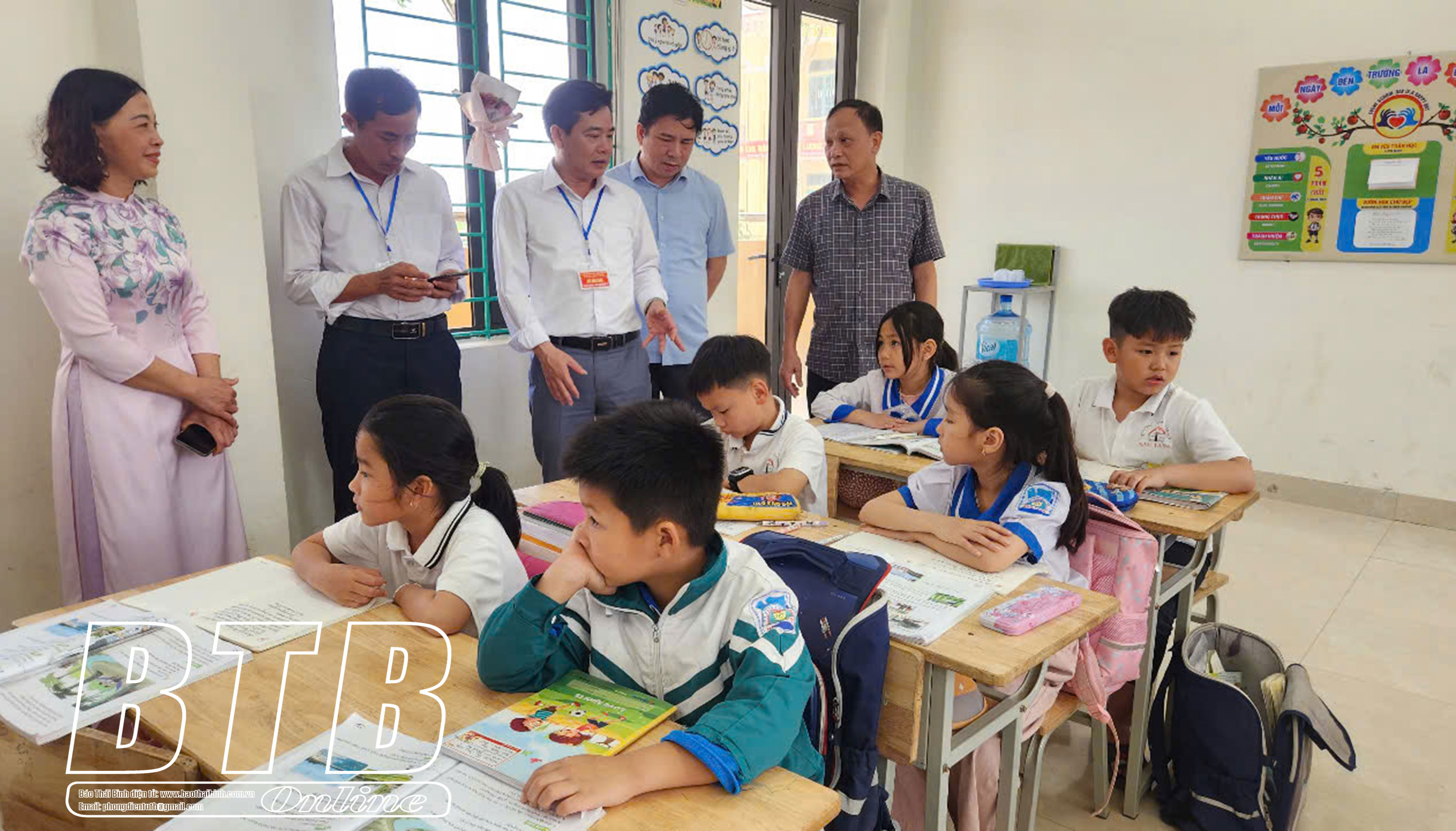 Đoàn kiểm tra tiêu chí giáo dục tại Trường Tiểu học và THCS Nam Hưng, huyện Tiền Hải.