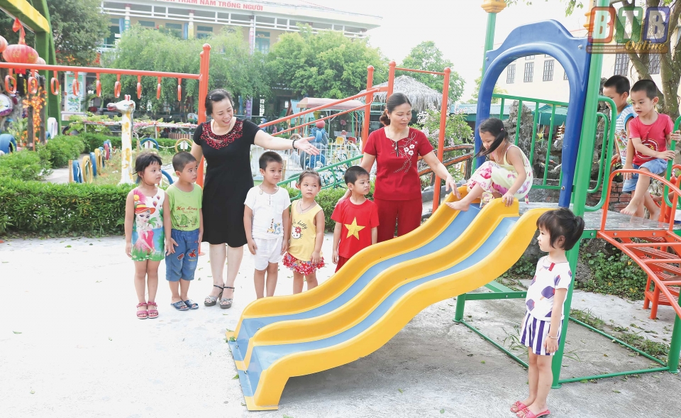 Trường Mầm non Quỳnh Khê được đầu tư cơ sở vật chất, trang thiết bị phục vụ dạy và học đạt chuẩn quốc gia.