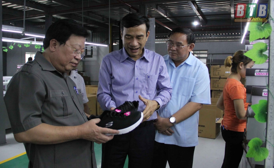Đồng chí Đặng Trọng Thăng, Phó Bí thư Tỉnh ủy, Chủ tịch UBND tỉnh thăm Công ty TNHH Phúc Mậu (Đông Phương).