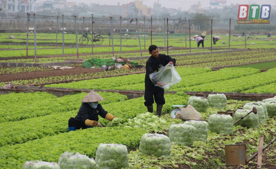 Nông dân xã Trung An (Vũ Thư) thu hoạch rau màu.