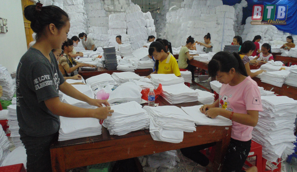 Làng nghề dệt khăn xã Thái Phương (Hưng Hà) tạo việc làm cho hàng ngàn nông dân lúc nông nhàn.