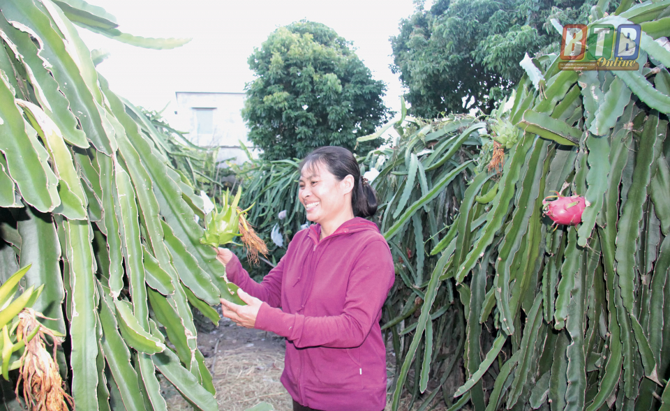 Mô hình trồng thanh long của chị Nguyễn Thị Luyến, thôn Phù Sa.