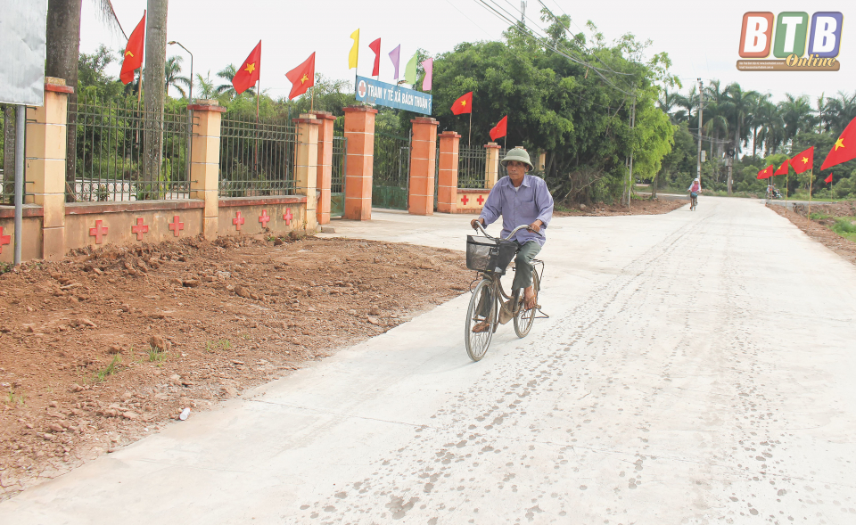 Thực hiện Chương trình mục tiêu quốc gia về xây dựng NTM, một trong những khó khăn, thách thức đối với Bách Thuận là việc thực hiện tiêu chí giao thông. Với đặc thù địa hình thấp trũng, hệ thống ao, hồ dày đặc, Bách Thuận còn có hệ thống giao thông gồm đường trục huyện, trục xã, trục thôn, nhánh cấp 1, ngõ xóm dài gần 90km. Phần lớn các tuyến đường trong khu dân cư đều nhỏ hẹp, lại nằm giữa hai ao sâu nên chi phí kè ao và làm đường tốn kém hơn nhiều so với việc làm đường giao thông ở các địa phương khác. Trước khó khăn trên, cấp ủy, chính quyền xã đã ban hành nhiều nghị quyết chuyên đề về xây dựng NTM đồng thời tập trung lãnh đạo, chỉ đạo, triển khai quyết liệt các nhiệm vụ, trong đó đẩy mạnh công tác tuyên truyền về ý nghĩa, lợi ích lâu dài của việc mở rộng, cứng hóa hệ thống giao thông nông thôn. Nhờ đó mà các tầng lớp nhân dân đã nêu cao tinh thần đoàn kết, tự giác đóng góp kinh phí, ngày công tham gia làm đường giao thông, tạo thành phong trào sôi nổi. Đặc biệt, không chỉ đóng góp kinh phí theo quy định, nhiều gia đình cán bộ, đảng viên, hộ dân ở các khu dân cư đều tự nguyện hiến đất, dỡ tường bao để mở rộng đường, ngoài ra còn ủng hộ thêm tiền mặt để cứng hóa đường làng, ngõ xóm. Điển hình như gia đình ông Nguyễn Kim Vinh ở thôn Trung Hòa đã ủng hộ thôn hơn 250 triệu đồng để làm đường. Ông Vinh chia sẻ: Cơ sở hạ tầng có khang trang mới tạo điều kiện thuận lợi cho các tầng lớp nhân dân, thế hệ con cháu học tập, lao động sản xuất, từng bước cải thiện và nâng cao đời sống, xây dựng quê hương ngày càng phát triển.