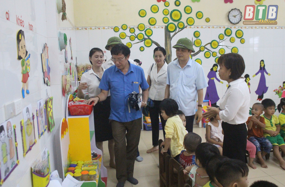 Đoàn công tác khảo sát thực tế tại Trường Mầm non xã Tây Giang (Tiền Hải).