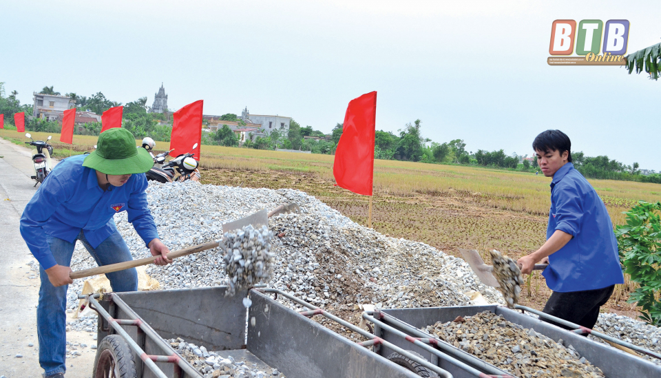 Chị Nguyễn Thị Thơm, Phó Bí thư Tỉnh đoàn cho biết: Từ việc làm thường xuyên là tham gia sửa chữa, nâng cấp, làm mới đường nông thôn, Ban Thường vụ Tỉnh đoàn đã xây dựng công trình thanh niên với tên gọi bê tông hóa, cứng hóa đường giao thông nông thôn nhằm tăng cường sự tham gia của tổ chức đoàn trong xây dựng NTM. Từ khi công trình ra đời đến nay đã có tác động mạnh mẽ đến ý thức của đoàn viên thanh niên tự giác, xung kích, tình nguyện huy động, đóng góp nguồn lực và công lao động tham gia làm mới, tu bổ nhiều tuyến đường giao thông phục vụ nhu cầu đi lại của người dân, góp phần thực hiện tốt tiêu chí số 2 về giao thông nông thôn. 10 năm qua, các cấp bộ đoàn trong tỉnh huy động được 8.463 ngày công tham gia vận chuyển nguyên liệu xây dựng, san lấp và cứng hóa 187,5km đường giao thông nội đồng, liên thôn, liên xã.