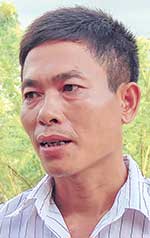Ông Sự thu hoạch hòe trên vùng đất tích tụ.