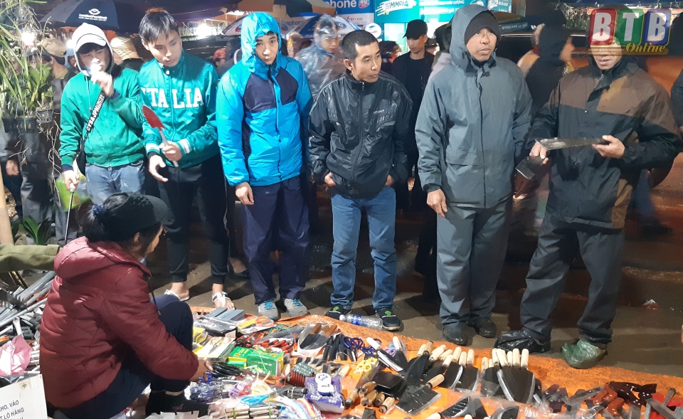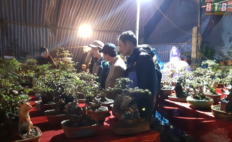 Du khách chọn mua cây cảnh tại chợ Viềng.