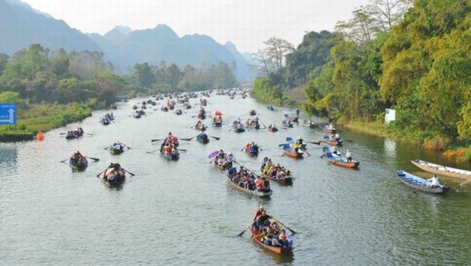 Chùa Hương là quần thể những công trình kiến trúc nằm rải rác quanh dòng suối, du khách đế với chùa Hương trong dịp đầu năm sẽ được lênh đênh trên những con đò, ngắm nhìn cảnh núi non trùng điệp và hòa mình vào thiên nhiên non nước.