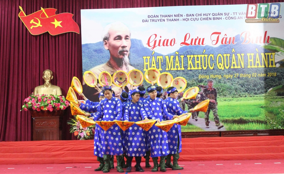 Trong chương trình giao lưu, các đại biểu đã cùng nhau ôn lại truyền thống hào hùng của Quân đội nhân dân Việt Nam; truyền thống “Thóc thừa cân, quân vượt mức”, tinh thần chiến đấu ngoan cường của quân và dân Đông Hưng anh hùng. Chương trình giao lưu còn có nhiều tiết mục văn nghệ đặc sắc ca ngợi tình yêu quê hương đất nước, tinh thần nhiệt huyết của tuổi trẻ khi lên đường nhập ngũ.